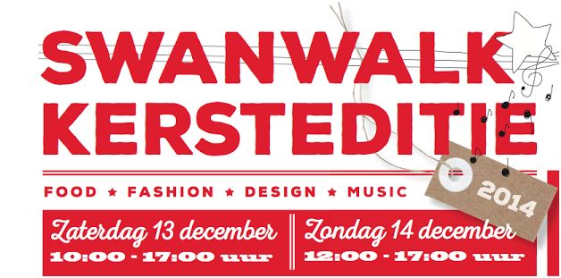 Swan Walk kersteditie: zaterdag 13 december van 10.00 tot 17.00 uur en zondag 14 december van 12.00 tot 17.00 uur. Kijk voor het laatste nieuws, het volledige programma en de deelnemers op www.swanwalk.nl